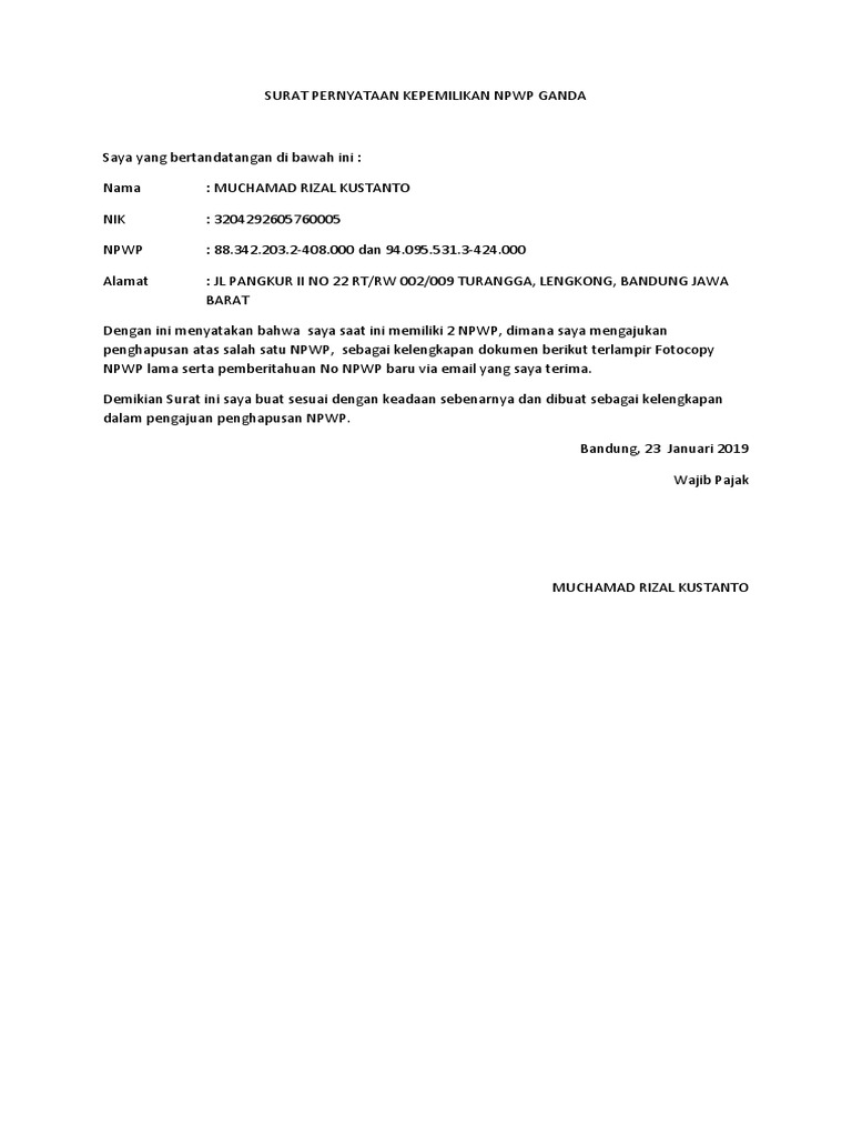 Contoh Surat Permohonan Npwp Badan Contoh Surat from imgv2-1-f.scribdassets.com Permohonan penghapusan npwp diajukan oleh wajib pajak yang bersangkutan, wakil, atau kuasa wajib pajak. Penghapusan npwp kerap menjadi pertanyaan umum para wajib pajak sebelum atau bahkan setelah mendaftar npwp. Penghapusan npwp orang pribadi dan badan. Surat pernyataan memiliki npwp lebih dari 1 (satu) beserta fotokopi semua kartu npwp. Kantor pajak akan melakukan pemeriksaan untuk menentukan permohonan penghapusan npwp bro dan. Siapa saja wajib pajak yang diperbolehkan melakukan. Penghapusan npwp bisa dilakukan atas permohonan wajib pajak sendiri ataupun secara jabatan jika npwp nya berkaitan dengan suatu jabatan resmi di pemerintahan. .penghapusan sanksi administrasi atas keterlambatan penyampaian surat 1 (satu) lembar 5 fotocopy surat tagihan pajak 1 (satu) lembar demikian surat permohonan kami.
